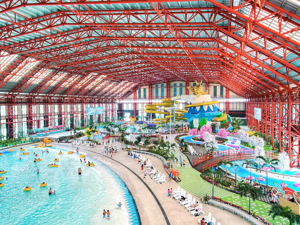 Cảm giác tuyệt vời này sẽ được kéo dài thêm một chút với chiều dài lên tới 140m. Điểm nổi bật của công viên nước trong nhà là thiết kế rồng có một không hai.