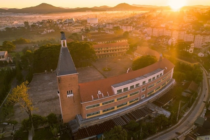 Trường Cao đẳng Sư phạm Đà Lạt: Công trình mang đậm phong cách Pháp, với nét cong mềm mại của dãy lớp học và tháp chuông uy nghi.